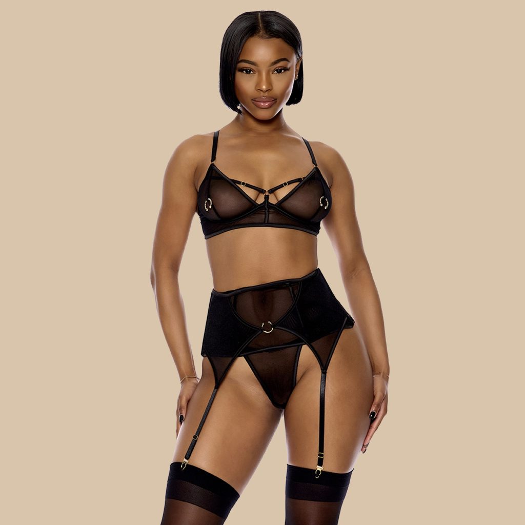 Set Fierce speelt met piercingdetails en sensuele mesh om je huid op een ondeugende manier te onthullen. De top en bottom vormen samen een edgy, sexy set die de perfecte balans biedt tussen gedurfd en elegant.
